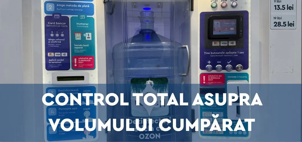 Această funcționalitate permite achiziționarea exactă a cantității de apă necesare, fie pentru consum zilnic, fie pentru prepararea băuturilor și a bucatelor.