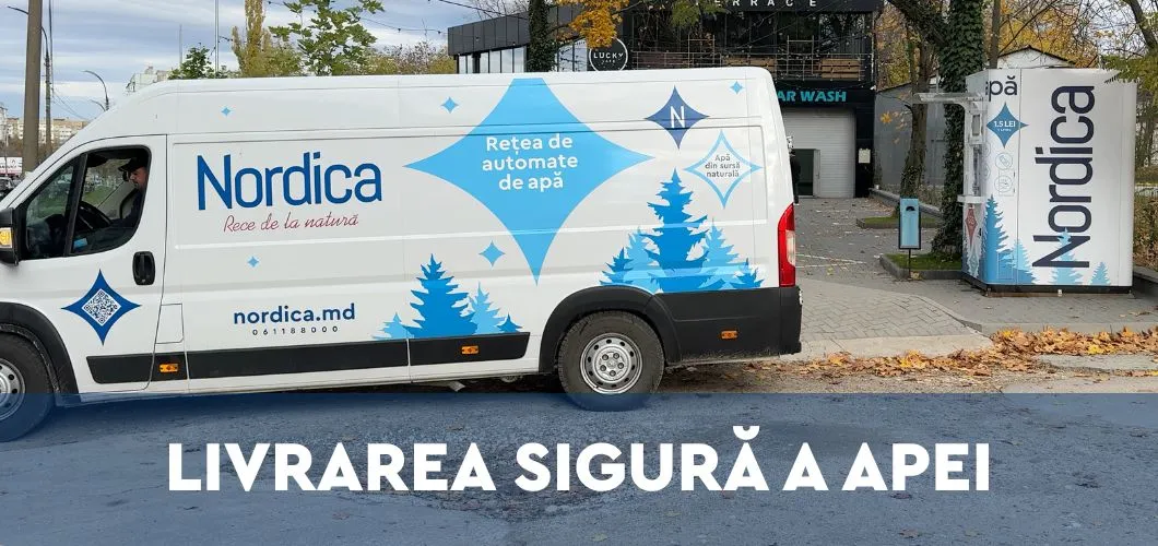 Astfel, Nordica livrează zilnic apă potabilă din sursă naturală către automatele amplasate aproape de casa ta, asigurând acces permanent, comod și sigur la apă potabilă de calitate, fără întreruperi și fără compromisuri privind siguranța.