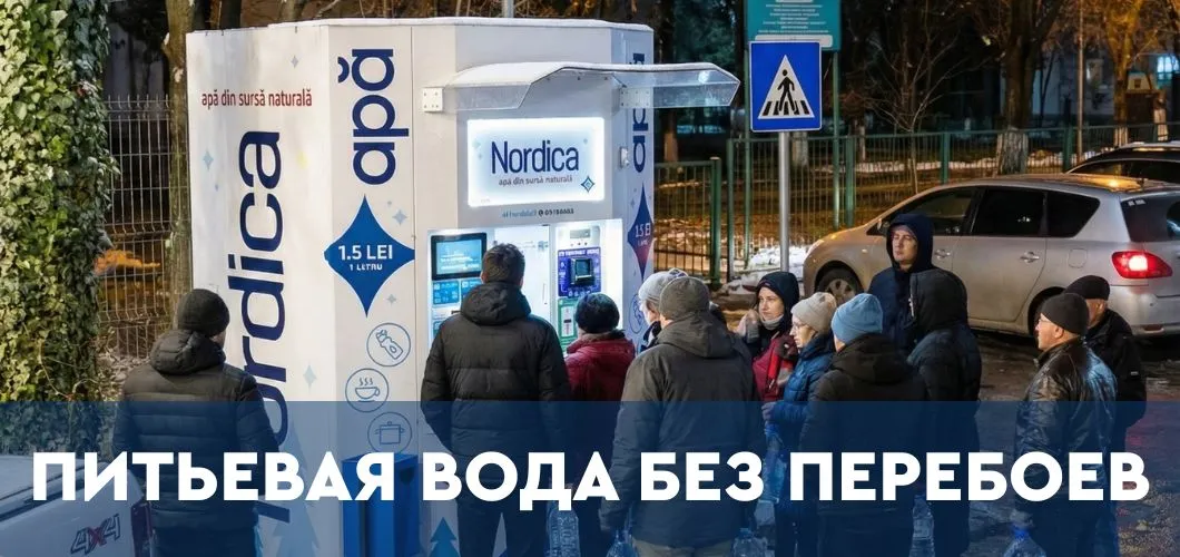 Опыт этого периода подтверждает, что водоматы Nordica являются надежным и эффективным решением. Благодаря независимому от общественного водопровода функционированию, Nordica гарантирует бесперебойное снабжение питьевой водой на всей территории Республики Молдова.